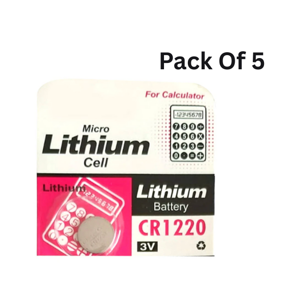 Micro Lithium Cell CR1220 3V Battery For Calculator, watches, Computers (Strip of 5 Pcs)