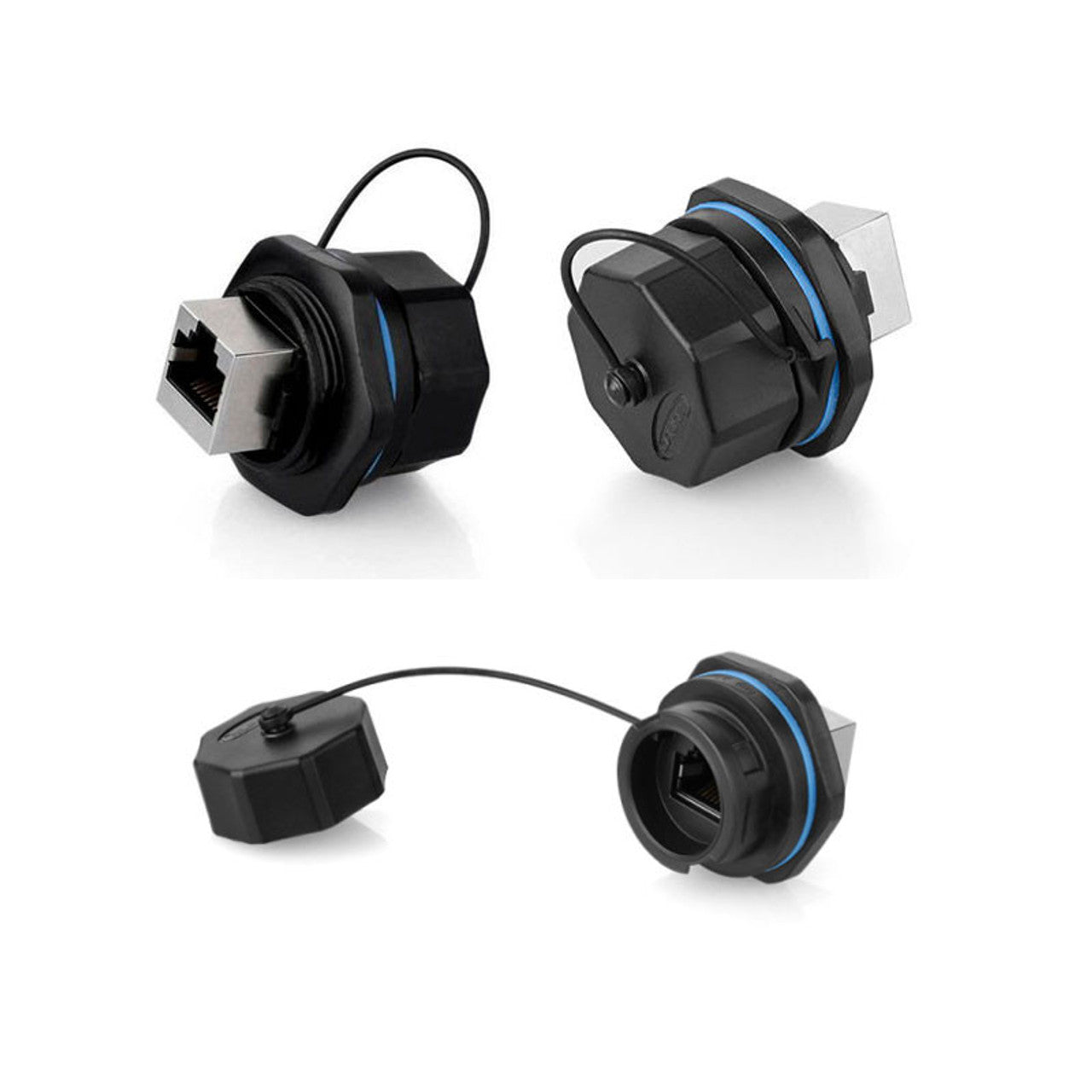 YT RJ45 Cat5e Female Socket Straight Dual Port IP65 Waterproof Ethernet Connector Panel Mount