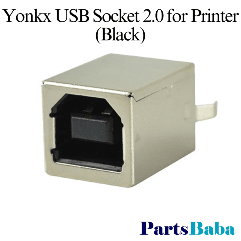 Standard USB 2.0 female printer socket with a 4-pin 90-degree connector for seamless computer connections.
