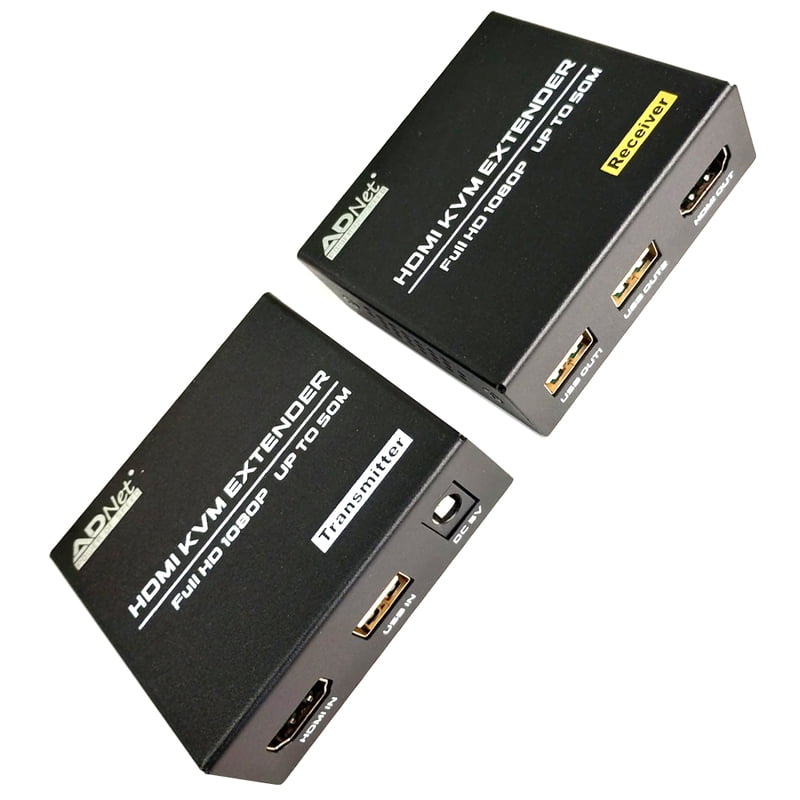 Extends HDMI signals up to 50 meters while supporting keyboard, video, and mouse (KVM) functionality, suitable for use in various video applications requiring long-distance transmission, though specific compatible models are not detailed.
