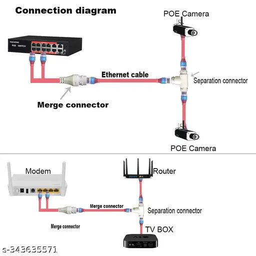 - POE Multiplexer Splitter Adapter Synthesizer 2-in-1 Connector Set Three-Way 10/100 Transmission Speed for IP Camera, HD, CCTV System