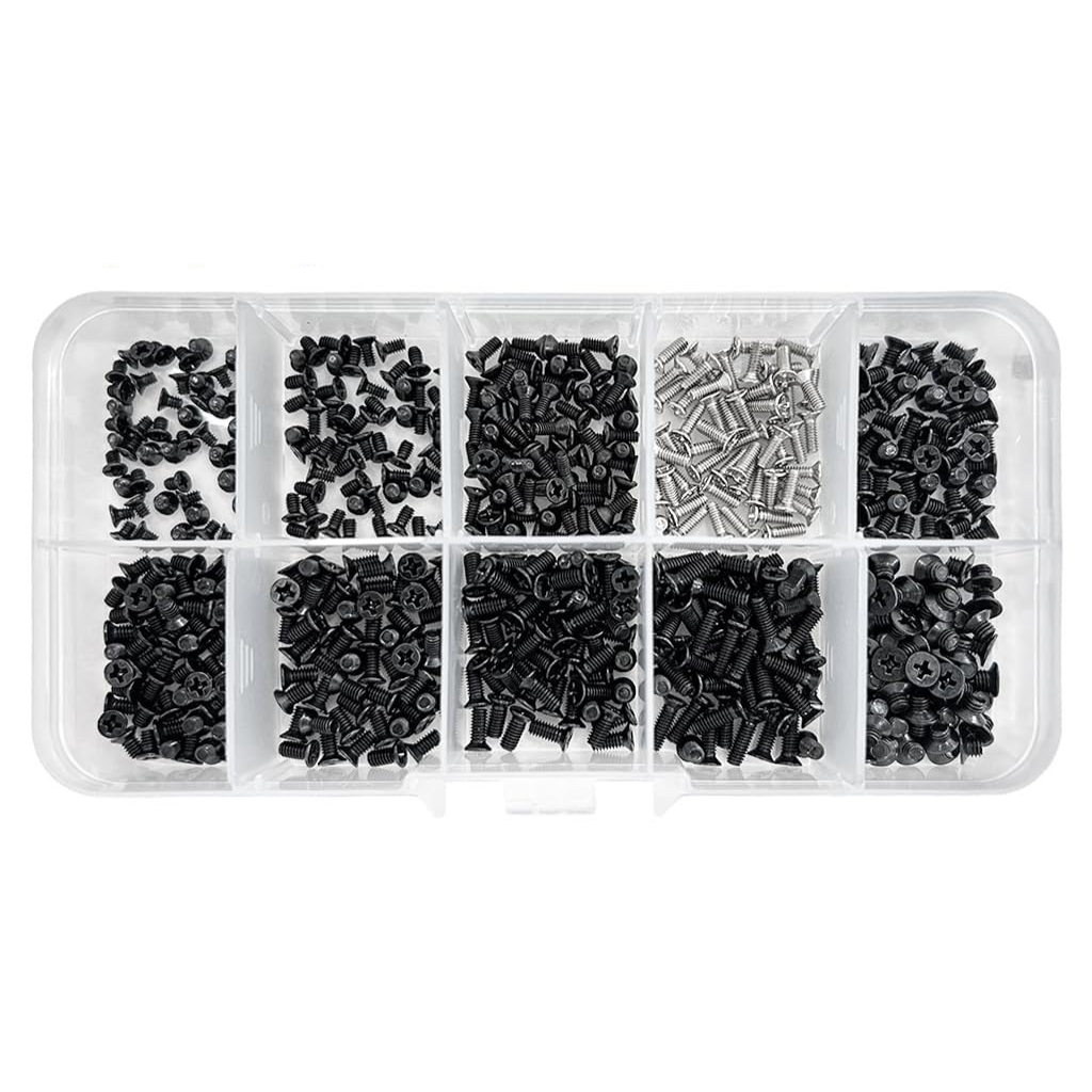 Each screw type is sorted in dedicated compartments, saving time during repairs and ensuring you always have the right size at hand. Made from high-quality metal with a black finish, these screws offer durability, corrosion resistance, and a perfect fit for most laptop brands and models.